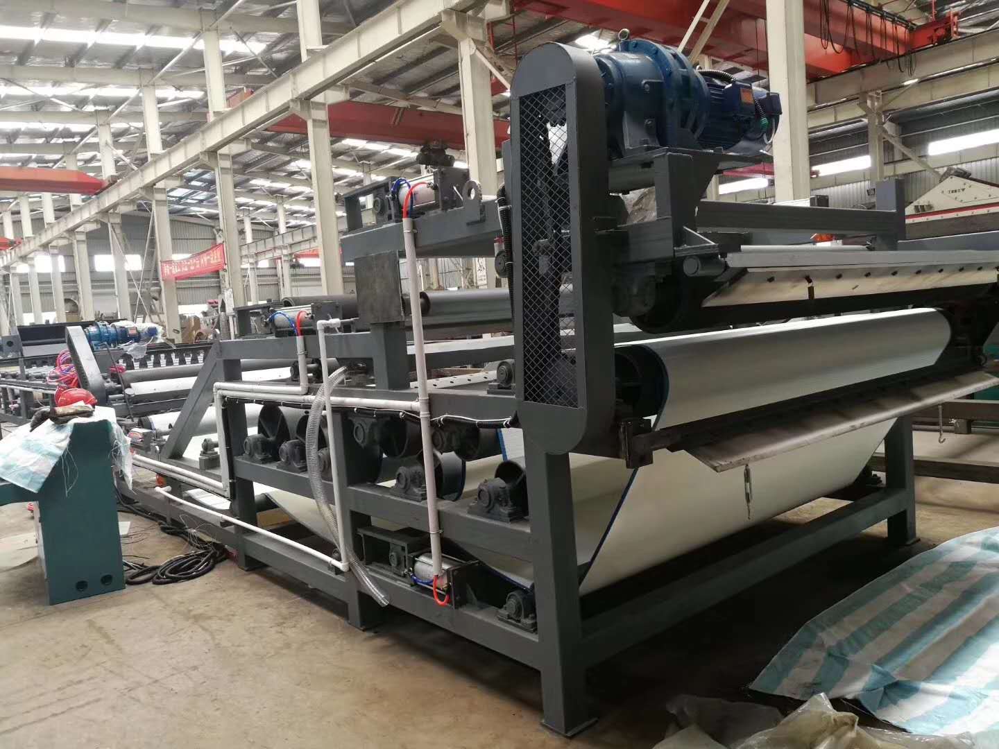 中型污泥壓濾一體機主要由驅動裝置、機架、壓榨輥、上濾帶、下濾帶、濾帶張緊裝置、濾帶清洗裝置、卸料裝置、氣控系統、電氣控制系統等組成。