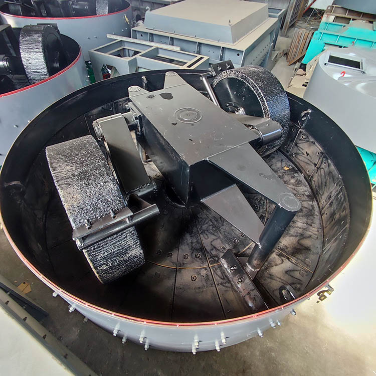 作為混合的設(shè)備稱為濕碾機(jī),它的構(gòu)造與干碾機(jī)相似,只是碾盤上無篩孔,碾砣較輕,有卸料機(jī)構(gòu)等。將配合料和水加入碾內(nèi),經(jīng)混練均勻后,用卸料機(jī)構(gòu)將料卸出。在混合過程中既有攪拌也有擠壓作用,能較好地排除物料顆粒間的空氣,使所混合的泥料水分均勻,顆粒表面潤濕充分,混練效果好,但對物料的粒度有一定的破壞作用。濕碾機(jī)較笨重,產(chǎn)量較低,能量消耗較大,但混練泥料的質(zhì)量好